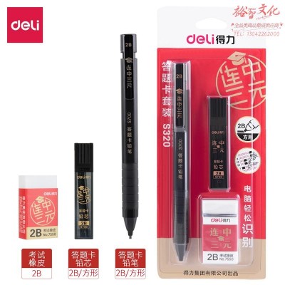 得力(deli)连中三元填涂答题卡活动铅笔 2B自动铅芯橡皮擦套装 S320(5个装)SKU:yzwhyp842153