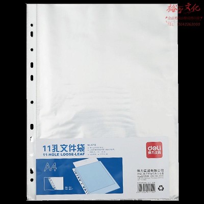 得力(deli)PVC快劳夹 文件夹 A4两孔2孔活页夹打孔夹 办公用品 11孔文件袋 单包(100只/包)5712SKU:yzwhyp842186