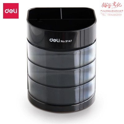 得力(deli)三层多功能办公笔筒 创意桌面收纳盒 办公用品 黑色9147SKU:yzwhyp842244