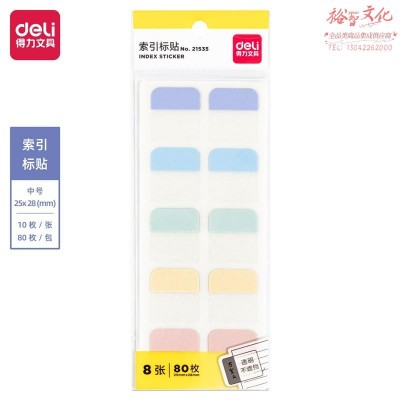 得力(deli)便利贴索引贴标签贴纸 彩色便利留言纸贴 中号-80枚/8张/包 21535SKU:yzwhyp842246
