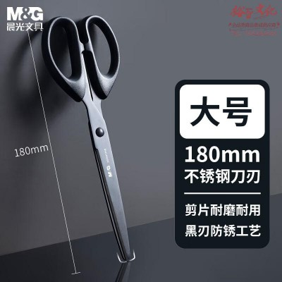 晨光(MG)文具180mm耐磨黑刃剪刀 不锈钢刀刃不易粘胶 办公用品 大号单把装ASS913H8SKU:yzwhyp842334
