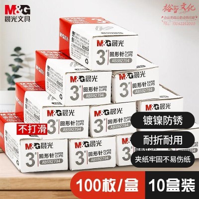 晨光(MG)文具3#镀镍回形针 金属防锈曲别针 办公用品 100枚/盒 10盒装ABS92794SKU:yzwhyp842339