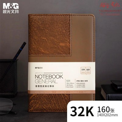 晨光(MG)文具32K/160张棕色办公笔记本 会议记录皮面本 普惠型日记本商务记事本子 单本装APY1FK78 考研SKU:yzwhyp842361