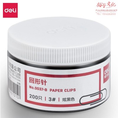 得力0037-B发黑回形针200枚/塑筒(黑)(筒)SKU:yzwhyp842399