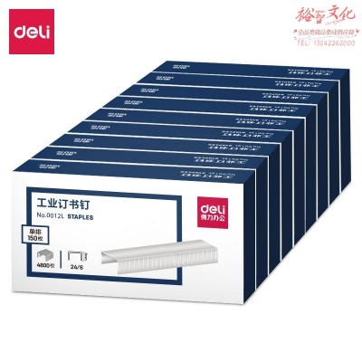 得力(deli)0012L 24/6工厂高强度长排工业订书钉 办公订书针 (4800枚/盒)*20盒装 银色SKU:yzwhyp842412