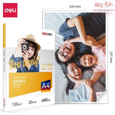 得力11830背胶高光相片纸A4-150g/m (白)(20张/包)SKU:yzwhyp842477