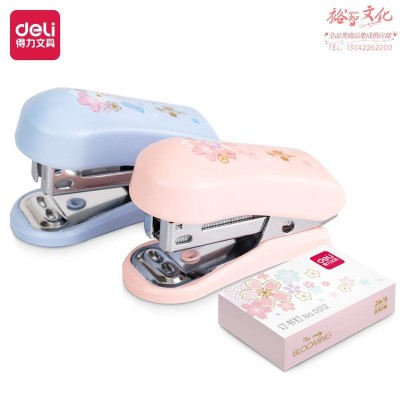 得力0257 樱花主题12#迷你订书机(混)(1订书机 1盒钉/卡) SKU:yzwhyp842589