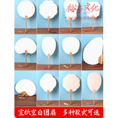 加厚宣纸团扇diy书法水墨画古风圆形扇子SKU:YZB101445