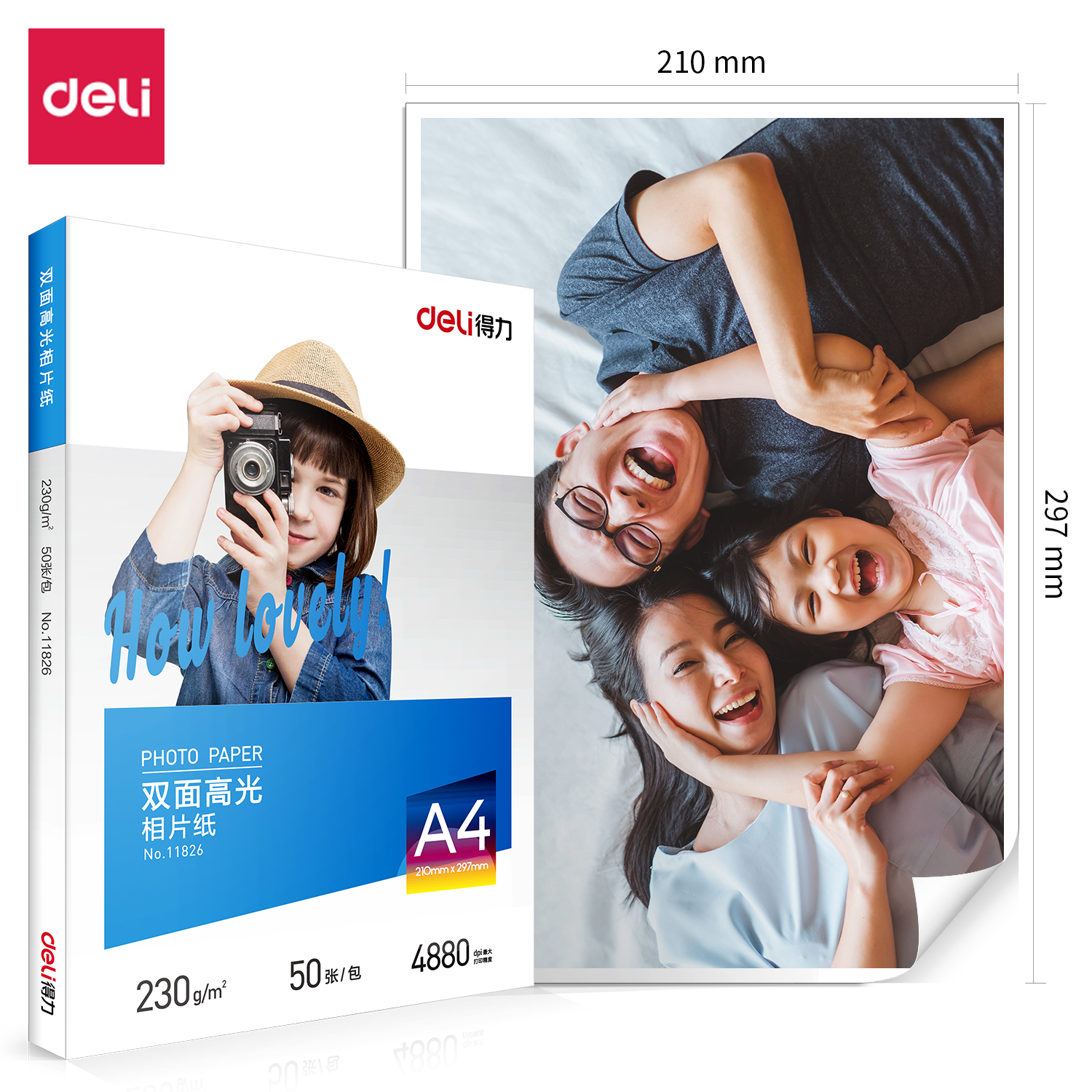 得力11826双面高光相片纸A4-230g/m (白)(50张/包)SKU:yzwhyp842779