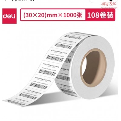 得力11875莱茵河长效三防热敏标签纸30*20mm-1000枚(白)(1卷/筒)SKU:yzwhyp842794