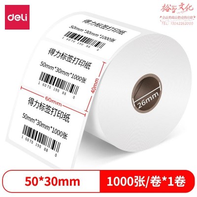得力12003珊瑚海三防热敏标签纸50*30mm-1000枚(白)(1卷/筒)SKU:yzwhyp842806