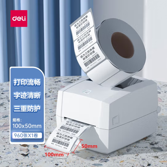 得力(deli)塞纳河100*50mm三防热敏标签打印纸 不干胶打印纸 条码纸 960张/卷 12312(卷)SKU:yzwhyp842817