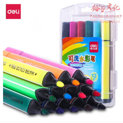 得力 12色水彩笔 可水洗绘画笔 粗三角杆 70656盒装 SKU:YZB101487