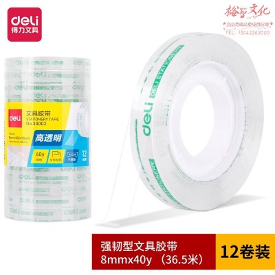 得力30002强韧型文具胶带8mm*40y*38um(高透)(12卷/筒)SKU:yzwhyp843448