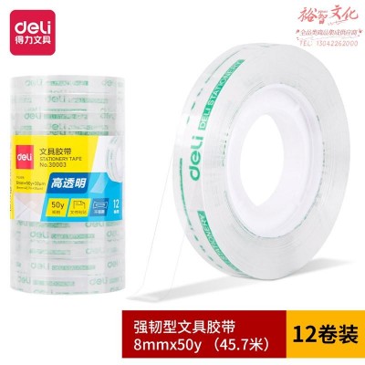 得力30003强韧型文具胶带8mm*50y*38um(高透)(12卷/筒)SKU:yzwhyp843449