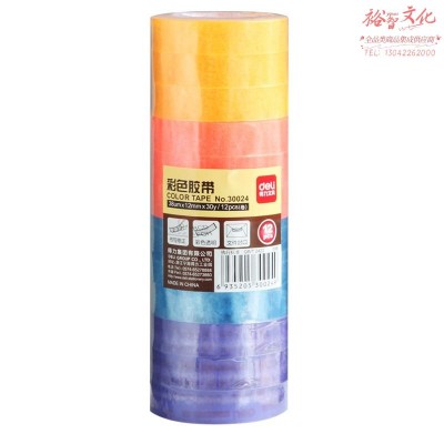 得力30024强韧型彩色文具胶带12mm*30y*38um(混)(12卷/筒)SKU:yzwhyp843460