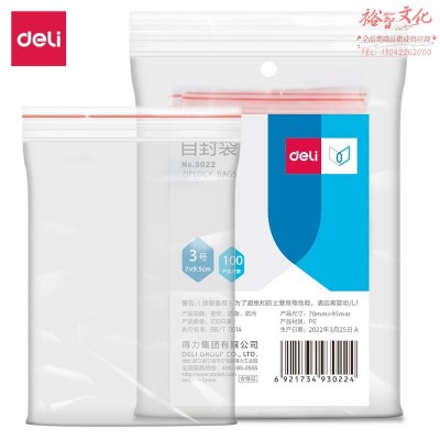 得力3022自封袋(透明)-3号(100个/包)100x70mm0.04mmSKU:yzwhyp843504