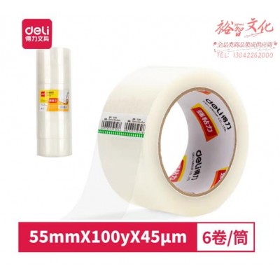 得力30283封箱胶带55mm*100y*45um(6卷/筒)(普透)SKU:yzwhyp843525