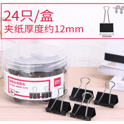 首页 > 办公用品 > 文具 > 得力(deli)长尾夹 24只32mm黑色长尾夹票夹 中号金属燕尾夹票据夹 凤尾夹文件夹子 鱼尾夹 资料试卷夹 办公用品 8563(2筒起送)