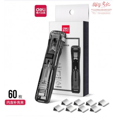 得力(deli)办公装订推夹器套装(推夹器 60枚补充夹) 可夹纸张数40张 透明黑33183 5个起订SKU:yzwhyp843683
