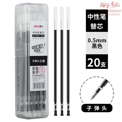 得力33402中性笔芯0.5子弹头(黑)(20支/桶)SKU:yzwhyp843701