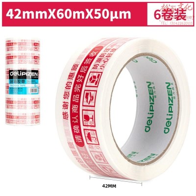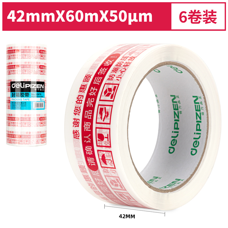 得力品正33970快递封箱胶带42mm*60m*50μm(白底红字)(6卷/筒)SKU:yzwhyp843739