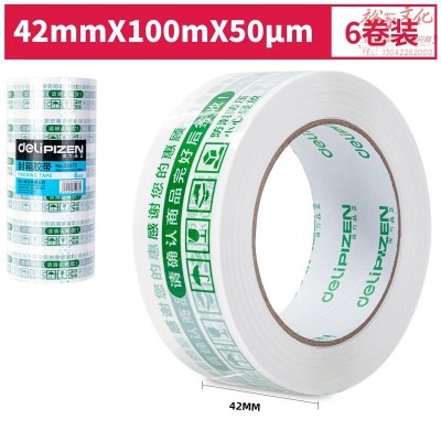 得力品正33973快递封箱胶带42mm*100m*50μm(白底绿字)(6卷/筒)(筒)SKU:yzwhyp843742