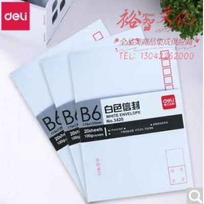 首页 > 办公用品 > 文具 > 得力(deli)信封白色信封邮局标准信封牛皮信封 3420 (白)-3号(20个/包)SKU:yzwhyp843748