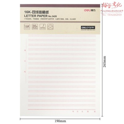 得力3428双线信稿纸-70g-266*190mm(本) 3本/盒SKU:yzwhyp843757