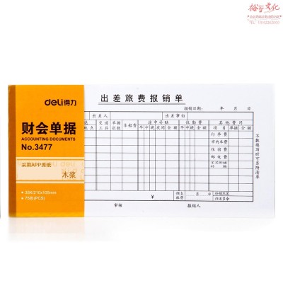 得力 3477出差旅费报销单(白色)(本)SKU:yzwhyp843783