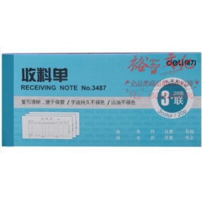 得力3487三联收料单(蓝)SKU:yzwhyp843788
