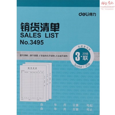 得力(deli)3495三联销货清单(蓝)(本)SKU:yzwhyp843795