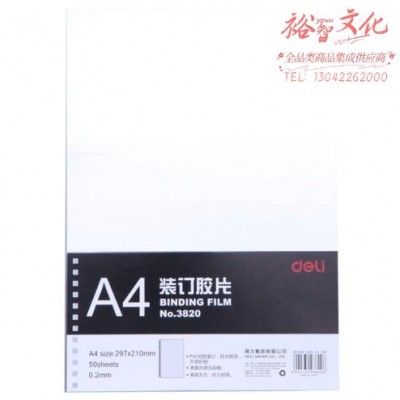 得力 3820 A4装订胶片 透明PVC胶片 打孔装订封面纸 塑料装订封皮装订胶片(50张/包)SKU:yzwhyp843865
