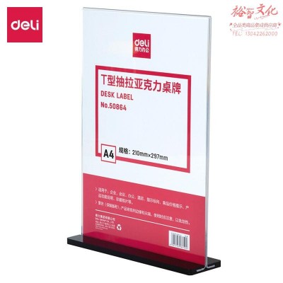 得力50864T型抽拉亚克力桌牌(透明)SKU:yzwhyp844073