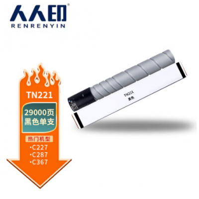 首页 > 办公用品 > 墨粉盒 > 人人印TN221黑色粉盒 适用柯尼卡美能达粉盒Bizhub C227 C287 C367 C7528复合机墨盒 大容量