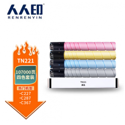 首页 > 办公用品 > 墨粉盒 > 人人印TN221套装 适用柯尼卡美能达粉盒Bizhub C227 C287 C367 C7528复合机墨盒 大容量
