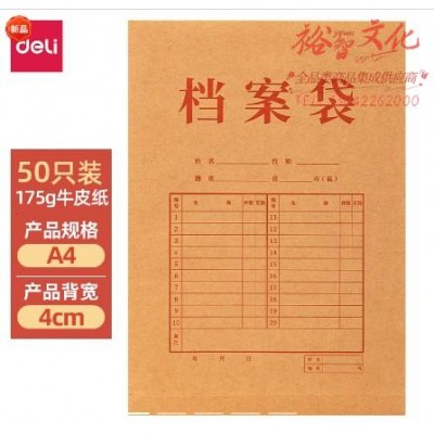 得力5952-50纯浆牛皮纸档案袋(175g-4cm)(黄)(50个/包)SKU:yzwhyp844407
