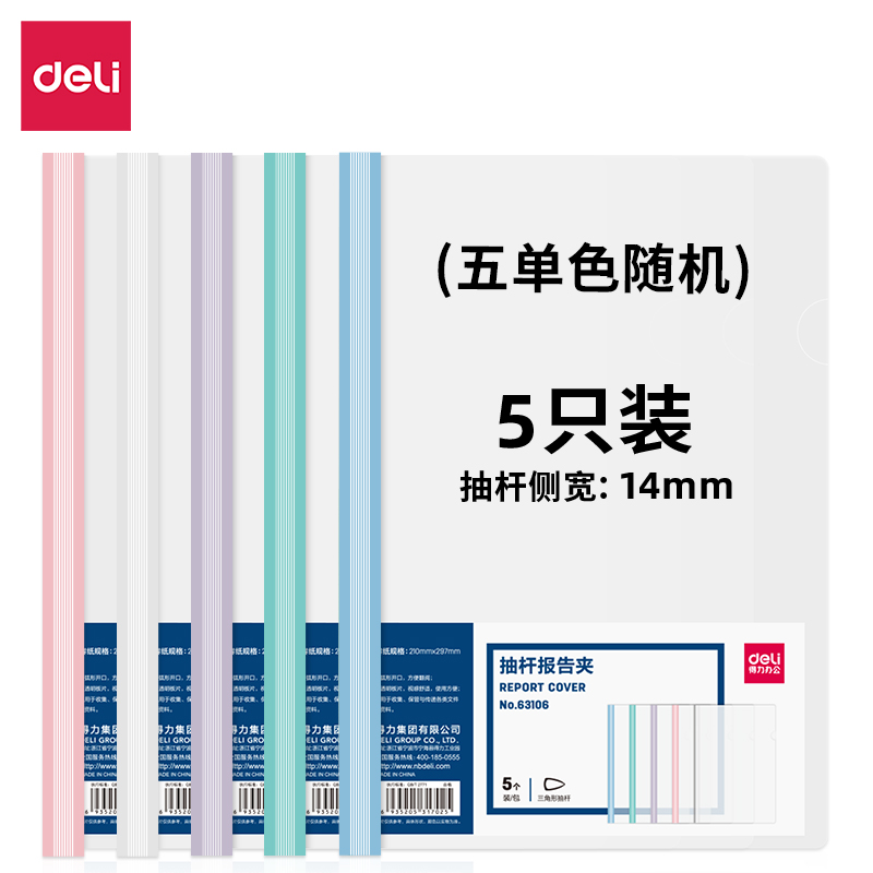得力(deli) 得力63106-抽杆报告夹(混)(5个/包)SKU:yzwhyp844466