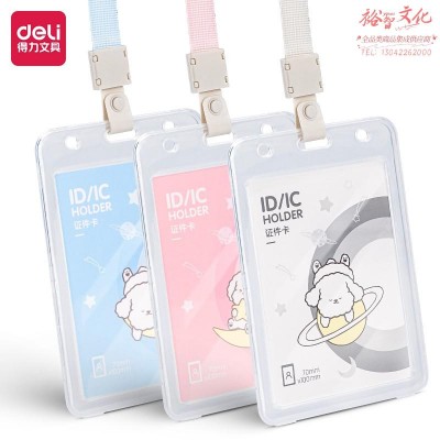得力 64808学生证件工作牌大规格透明卡套 挂绳款 混色SKU:yzwhyp844582