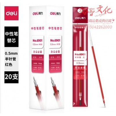 得力6901中性笔芯0.5mm半针管(红)(支)SKU:yzwhyp844805