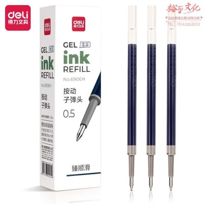 得力6906H臻顺滑中性笔替芯0.5mm按动子弹头(墨蓝)(20支/盒)SKU:yzwhyp844813