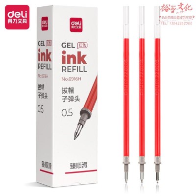 得力6916H臻顺滑中性笔替芯0.5mm拔帽子弹头(红)(支)SKU:yzwhyp844820