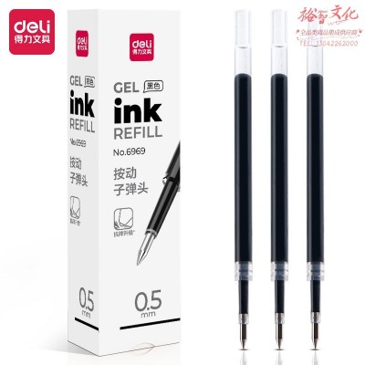得力6969中性笔替芯按动子弹头0.5mm(黑)(支)DBJ202308041020200SKU:yzwhyp844839