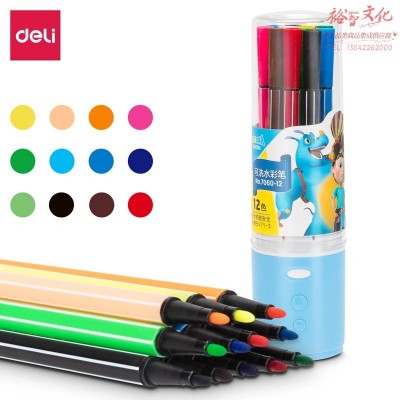 得力7060-12色细六角杆水彩笔(蓝)(桶)SKU:yzwhyp844872