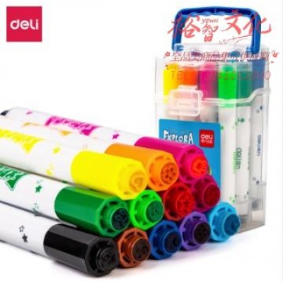 得力70673-12色印章水彩笔(混)(桶)SKU:yzwhyp844889