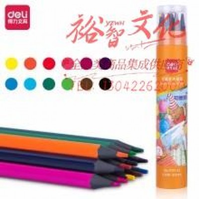 得力7073-12色六角杆皮头可擦彩铅(混)(12色/筒)SKU:yzwhyp844914