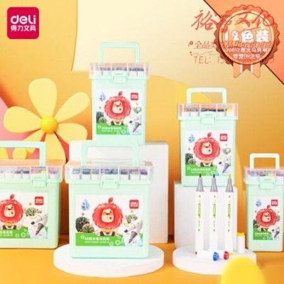 得力70812-12易洗水性三角杆马克笔(混)(12色/桶)SKU:yzwhyp844949