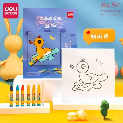 得力73905-3_油画棒涂鸦画板(鸭子)(混)(套)幼儿绘画涂色玩具 手工DIY自制画框SKU:yzwhyp845411
