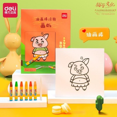 得力73905-4_油画棒涂鸦画板(小猪)(混)(套) 幼儿绘画涂色玩具 手工DIY自制画框 绘画套装..SKU:yzwhyp845412