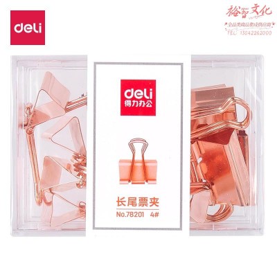 得力78201长尾票夹(玫瑰金)(12只/盒)SKU:yzwhyp845697